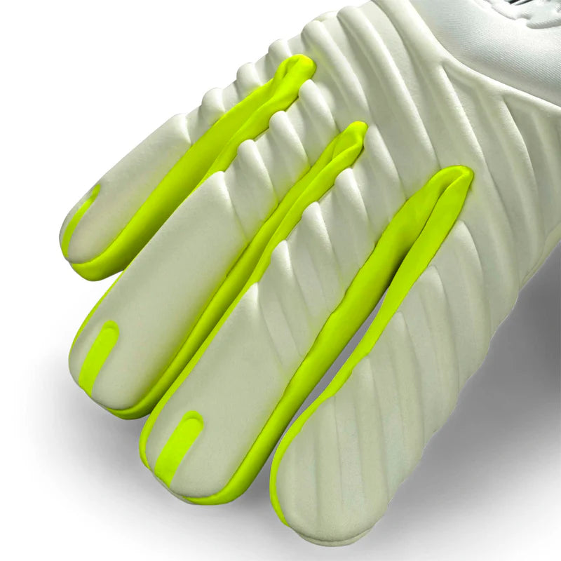 Vi introduserer 2026-utgaven av 88 Pro Grip i en helhvit "Polar Bear"-fargevariant, designet for å fremkalle det arktiske rovdyrets skremmende tilstedeværelse og skremme vekk angriperne. Disse hanskene får angriperne til å fryse og tenke seg om to ganger før de går inn i målfeltet. Vi har introdusert en helt ny konstruksjon og et nytt Hybrid Cut, som kombinerer et Slice Cut med det klassiske Negative Cut, med forbedrede funksjoner for pekefingeren og de midterste fingrene, noe som sikrer en svært teknisk passform og optimalisert kontroll. Materialet på bakhånden er redusert for å gi en tettere passform til hånden og forbedret sensorisk feedback, noe som gir en bedre spillopplevelse. Håndflaten har, som alltid, vår topprofesjonelle lateks, kjent for sitt enestående grep og holdbarhet. Punch Zone består av grippy lateks, for et bedre bokstreff til ballen når den bare skal langt ut av feltet. Håndleddet er nå blitt asymmetrisk med en pull-stropp, og stroppen er et hybrid design med både skum og tekstil, for å øke ytelsen og gi en bedre passform. Vi gleder oss til å se deg prestere ditt beste i disse hanskene, og utstråle isbjørnens dominans på banen!