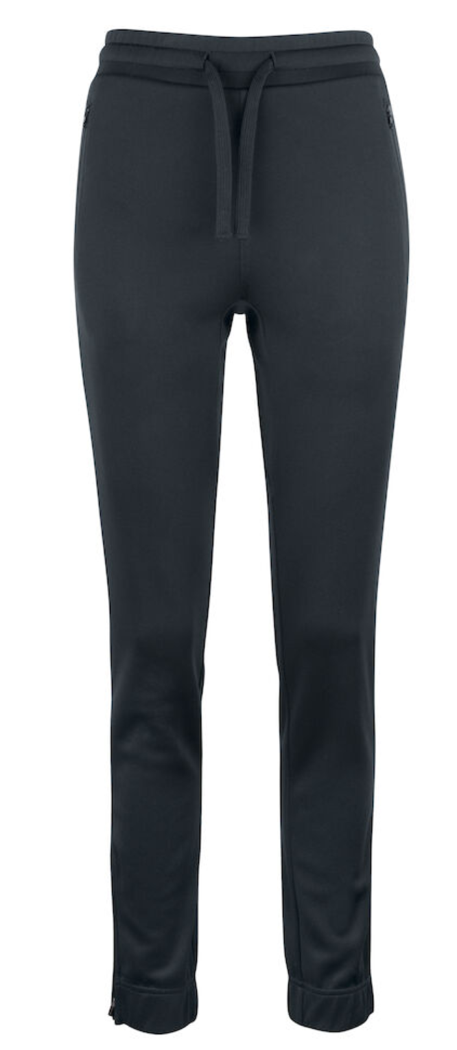 Sporty bukse i unisexmodell. Elastisk snøring i livet. To sidelommer med glidelås. Elastsk benavslutning med glidelås. Spun dyed. Avtagbar etikett.