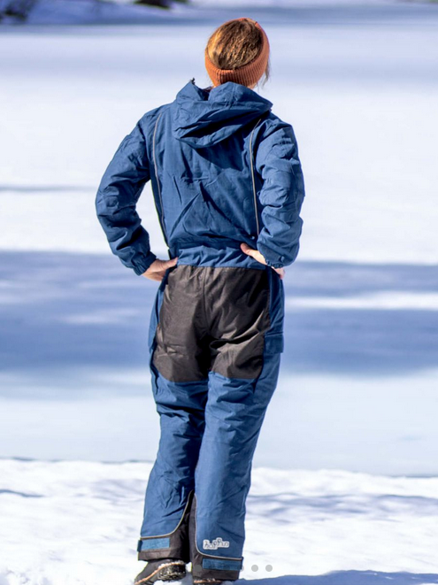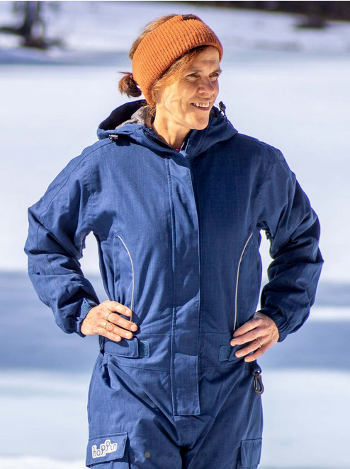 Hoppindressen blå til dame er en en fóret og vattert kjeledress for voksne som du aldri har sett maken til! Dressen er både varm, vindtett og vanntett, har passform tilpasset kvinner og har mange justeringsmuligeter for å kunne sitte godt på akkurat deg. God kvalitet, gjennomført design og smarte detaljer kjennetegner denne vinterdressen, som også er myk og komfortabel å bevege seg i. Perfekt når man er ute og i aktivitet med barn på de kalde årstidene.