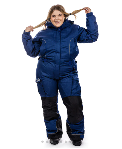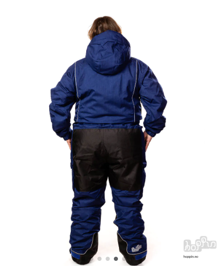 Hoppindressen Kort Blå til dame er en fóret og lett vattert heldress for voksne. Dressen er både varm, vindtett og vanntett, og har mange justeringsmuligeter for å kunne sitte godt på akkurat deg. Damer i ulike former og fasonger skal føle seg fine, stolte og komfortable i Hoppindressene, derfor er det lagt stor vekt på god passform og detaljer som justerbar beinlengde og stramming i livet.